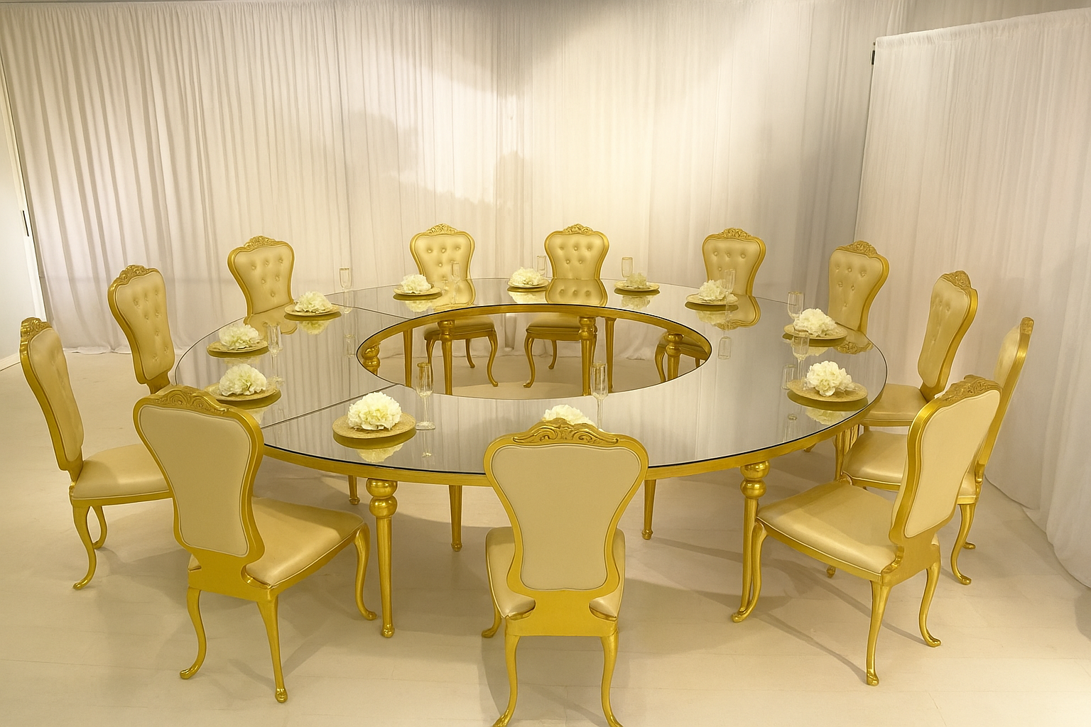 Be the first to review “Gold Luxury Table with bubble leg and mirror glass top”